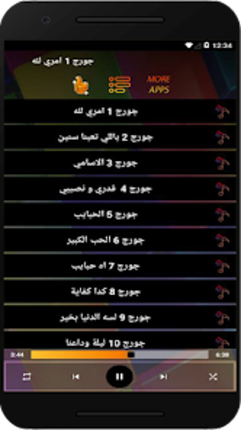 Приложение включает разнообразный плейлист, состоящий из 44 песен, таких как 'امري لله', 'ياللي تعبنا سنين' и 'جرحونا', демонстрируя глубину дискографии Вассуфа. Независимо от того, являетесь ли вы давним поклонником или новичком в его музыке, это приложение предлагает погружающий опыт в мир арабской музыки. Оффлайн-возможности повышают его удобство, обеспечивая возможность наслаждаться любимыми треками в любое время и в любом месте.